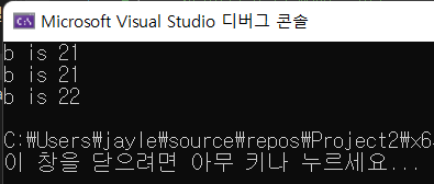 //b++은 문장을 수행하고 나서 다음문장 넘어갈 때 +1